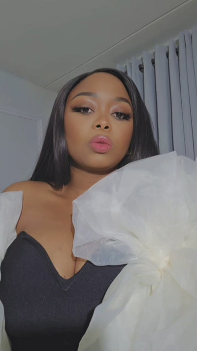 BOWEY is a timeless exquisite long bandage black dress with huge bows attached to the offshoulder arms for a unique look.
