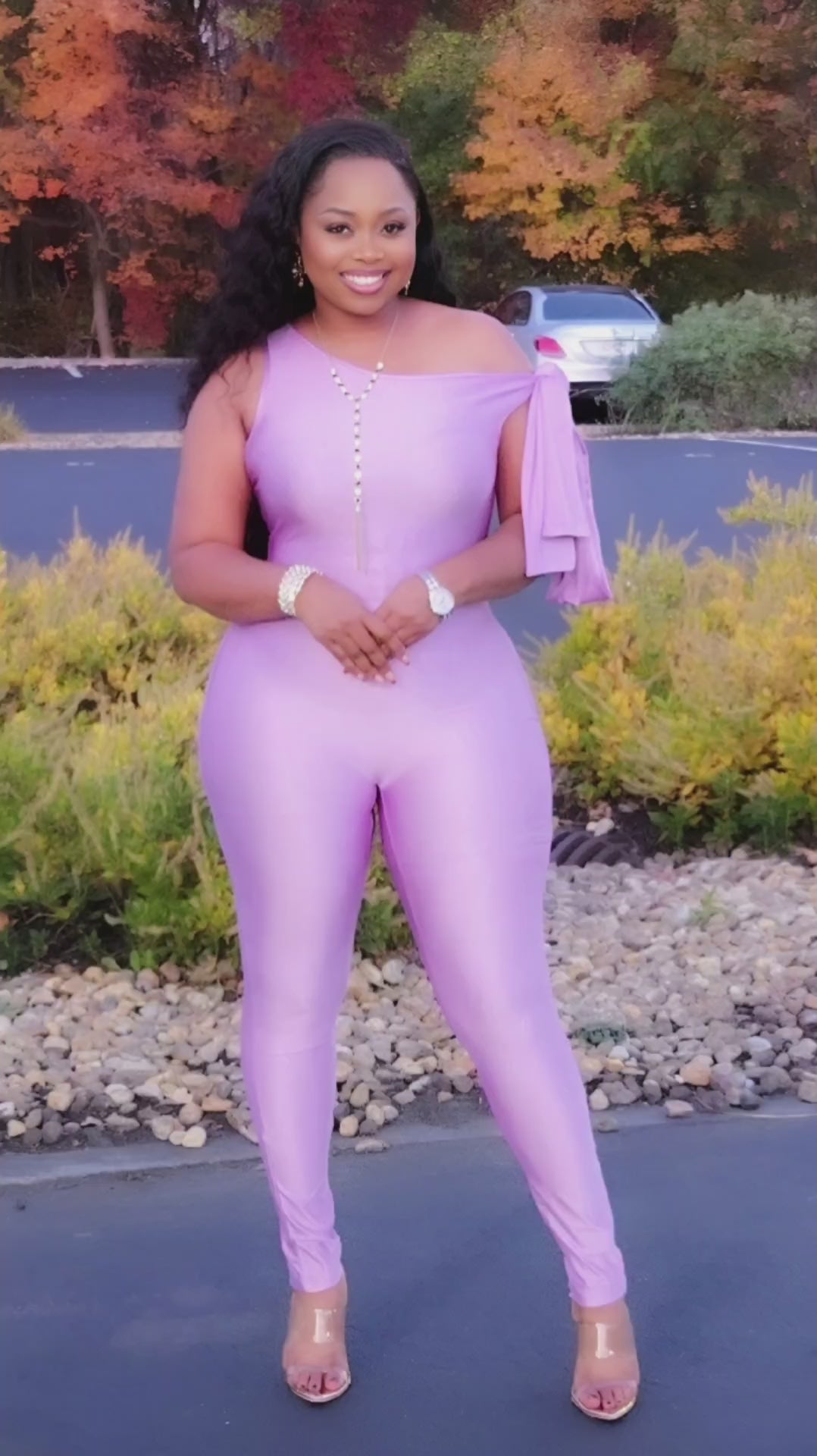 Jaymie is a lavender body hugging jumpsuit that has great stretch. A chic beautiful jumpsuit you need for a nightout, datenight and more.